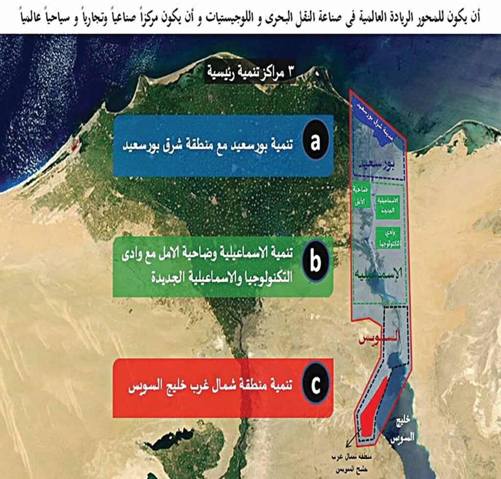 – Third place The Suez Canal Corridor development project involves developing the 46,000-acre West Gulf of Suez region. This includes the establishment of a logistics zone encompassing a naval arsenal and shipbuilding, container handling, transit trade, repair and maintenance services, shipping and technical inspection. It also includes the establishment of industrial sites for petrochemicals, ship supply and marine services projects, the manufacture of marine equipment and metal structures, the manufacture and packaging of feed and fish, and the packaging and export of chemical fertilizers and cement. The development of this zone also includes tourism activities through tourist and hotel housing, entertainment areas, restaurants, theaters and cinemas, and international sporting activities. It also includes marine activities through the establishment of a center for marine research and studies, the manufacture of boats and yachts, the construction of floating units, the marketing of marine products, and the manufacturing of aluminum products.