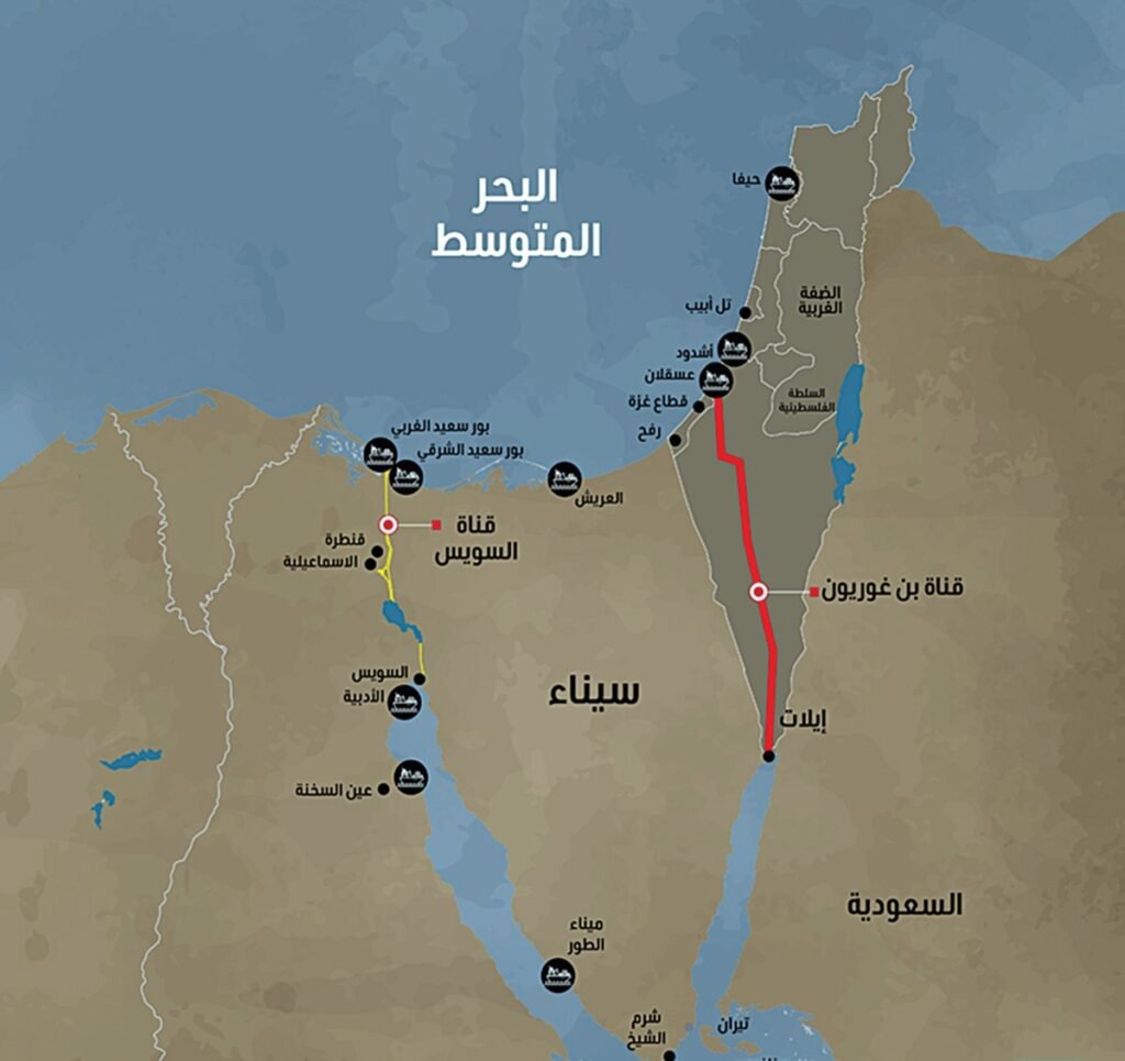 Several Israeli engineers have explained that it is possible to build a canal linking the Red Sea and the Mediterranean, and that it could become a real competitor to the Suez Canal. The distance between Eilat via the Red Sea and the northeastern coast of the Mediterranean is not great, and it is very close to the distance ships travel through the Suez Canal to get from the Red Sea to the Mediterranean and vice versa. The experts indicated that the Israeli government should push for a canal project linking the Gulf of Aqaba via Eilat to the Mediterranean north of the Gaza Strip, or via it, in a manner consistent with Israeli interests, without constructive solutions to the Palestinian issue and efforts to displace Gazans from the aforementioned area.